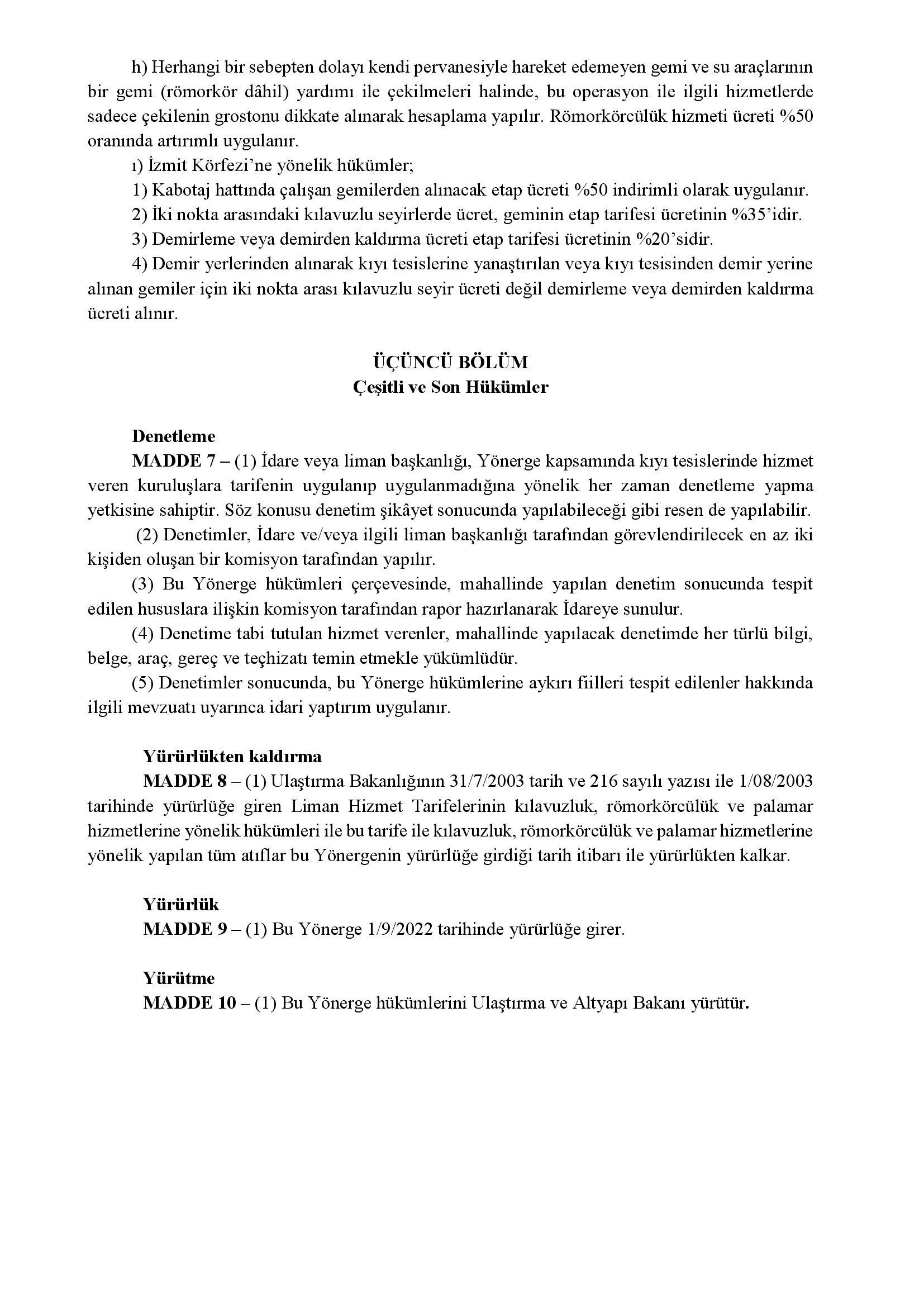 KILAVUZLUK VE RÖMORKÖRCÜLÜK ILE PALAMAR HIZMETLERININ ÜCRETLERI HAKKINDA